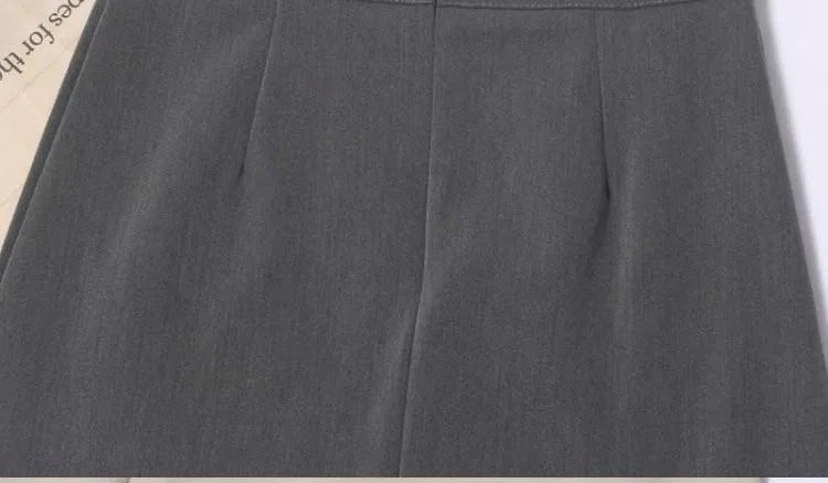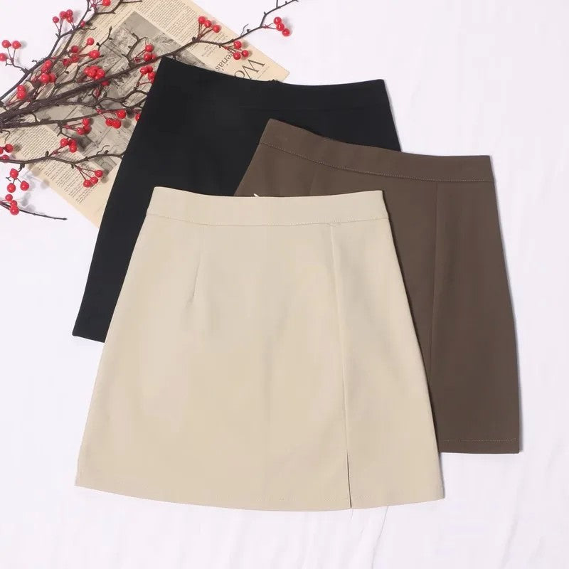 Saia em estilo coreano com modelagem A-line e cintura alta, que valoriza a silhueta e garante um caimento fluido e elegante. O detalhe de fenda no quadril acrescenta modernidade ao design, tornando a peça ainda mais sofisticada.